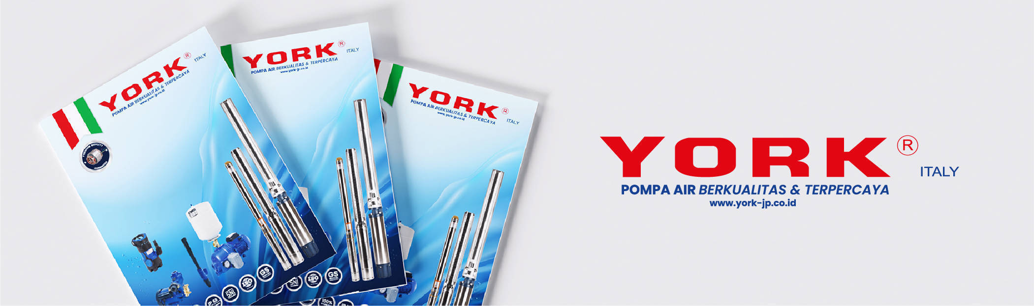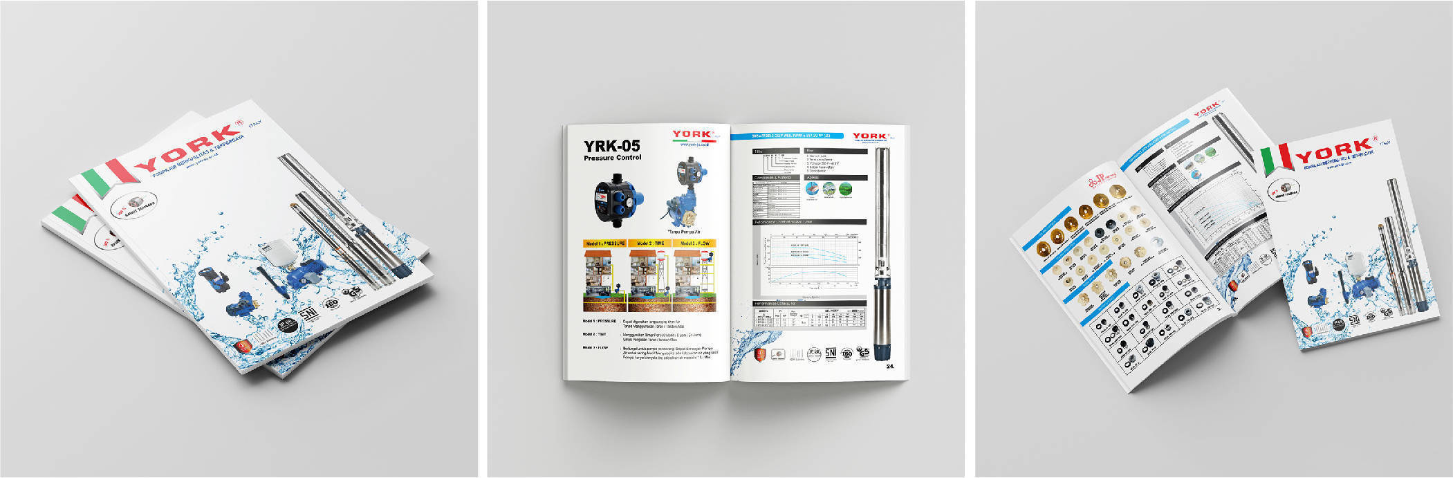 Katalog brand YORK dengan tema Pompa Air dirancang dengan konsep modern dan informatif, menampilkan desain elegan yang menggabungkan visual berkualitas tinggi dengan informasi teknis yang jelas. Setiap halaman dikemas dengan perpaduan warna profesional dan tata letak yang rapi, memastikan pengalaman membaca yang nyaman dan menarik. Dengan fokus pada keunggulan produk, katalog ini tidak hanya menampilkan spesifikasi pompa air YORK secara detail, tetapi juga menghadirkan ilustrasi aplikasi nyata yang membantu pelanggan memahami keandalan dan efisiensinya dalam berbagai kebutuhan.